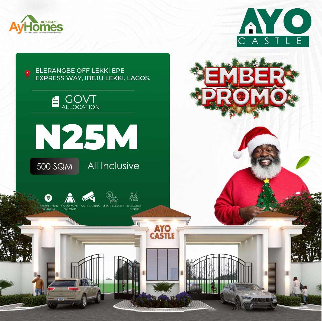 EMBER PROMO! AYO CASTLE is your golden opportunity! Nestled in the fast-developing Elerangbe, off Lekki-Epe Expressway, Ibeju Lekki, this estate offers a perfect blend of comfort, security, and high-value returns. Whether you’re looking to build your dream home or invest in the future, this is the place to be!
