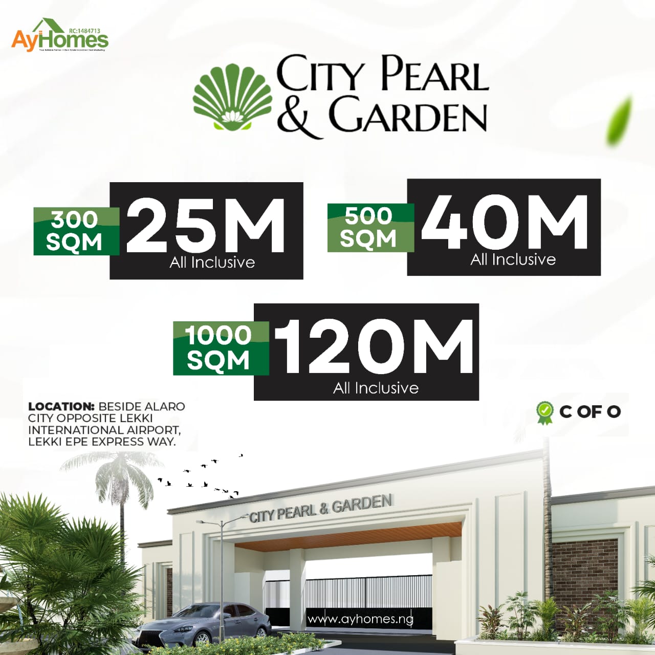 This prime location is situated beside Alaro City and opposite the Lekki International Airport on the Lekki-Epe Expressway. With a secure title Certificate of Occupancy (C of O) in place, City Pearl & Garden offers a golden opportunity to invest in your future.